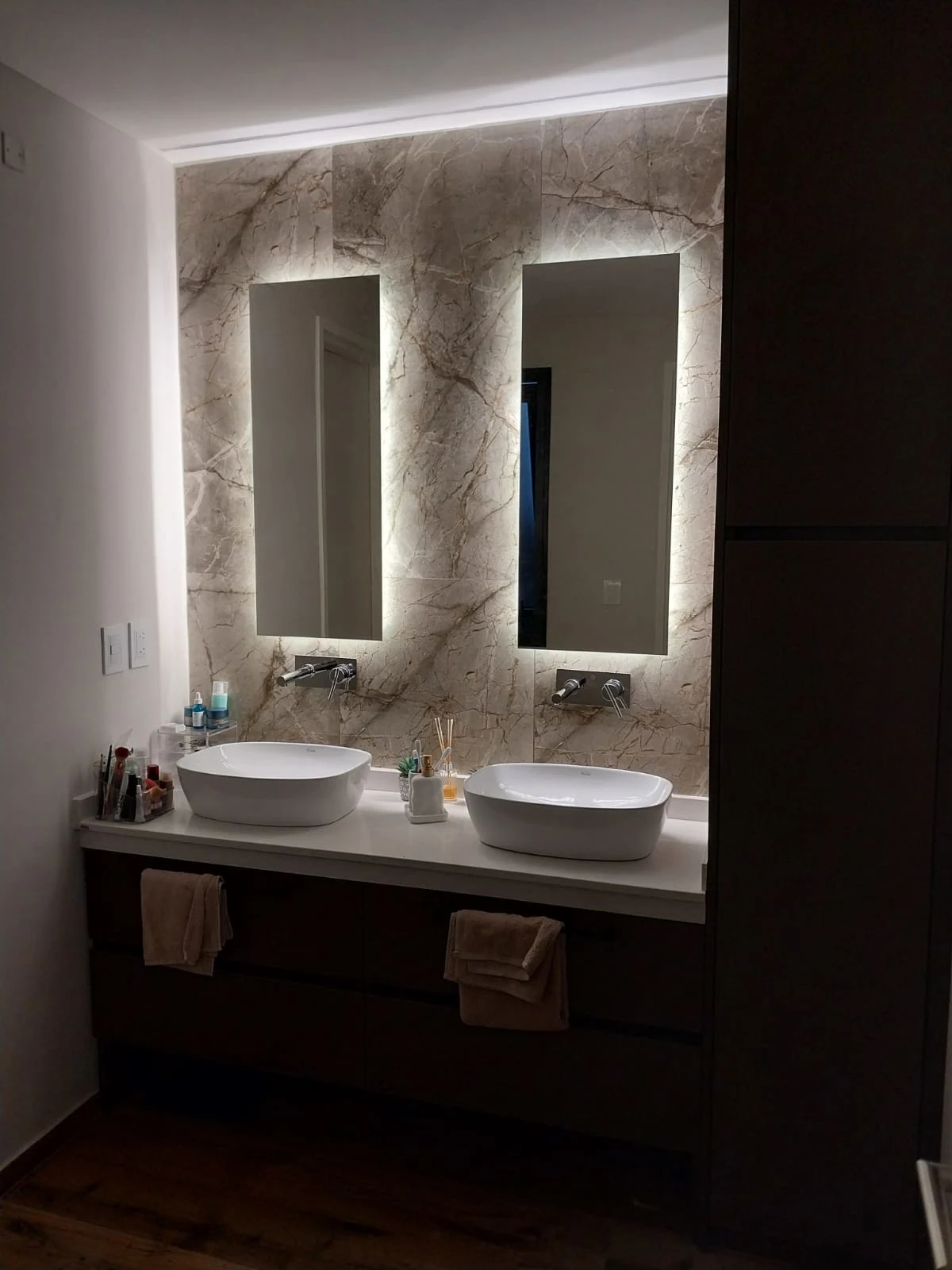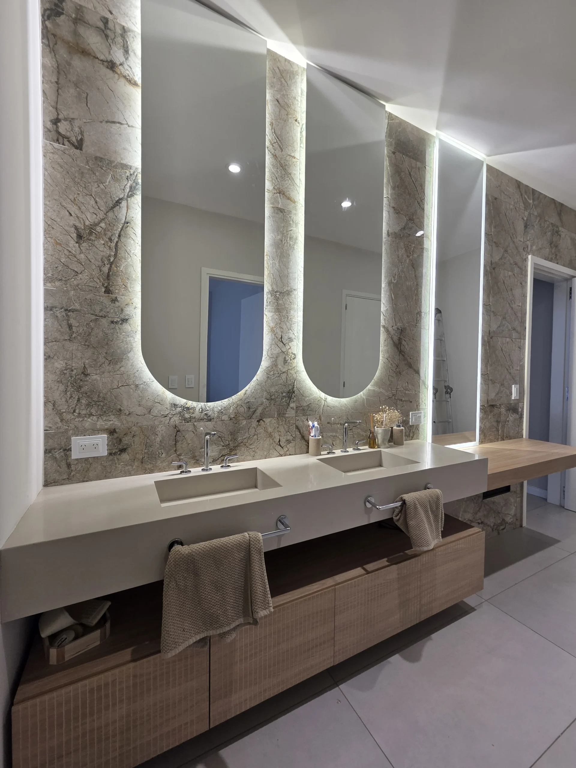 Completamente personalizado, desde el tamaño y la forma del espejo, el color del marco, el agregado de luces led, todo hecho a tu gusto.