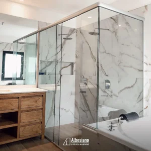 Mamparas corredizas: Si buscás funcionalidad y flexibilidad, nuestras mamparas corredizas son la solución ideal. Permiten ajustar, adaptar y y darle hermetismo a los espacios según tu conveniencia. Perfectas para particiones de ambientes o como soluciones prácticas en baños.