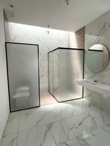 Mamparas fijas: Perfectas para dividir espacios sin sacrificar la luminosidad ni la sensación de amplitud. Nuestras mamparas fijas se instalan con precisión para asegurar una separación clara y elegante, ideal para oficinas, baños o cualquier área que requiera un toque de sofisticación.